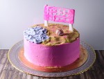 A friend of mine had a Beach Divas themed volleyball tournament, so I volunteered to make a themed cake. It was a good opportunity to practice my wedding cake recipe too! I made some adjustments based on how the last cake turned out and was really happy with the final result!